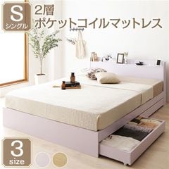 ベッド シングル 2層ポケットコイルマットレス付き グレージュ コンセント付き すのこ 木製 【同梱不可】【代引不可】[▲][TP]