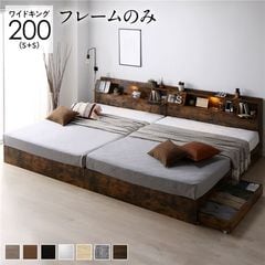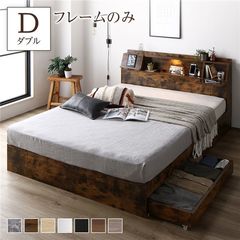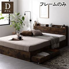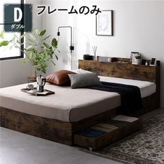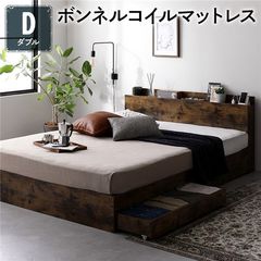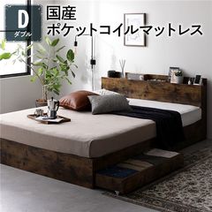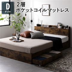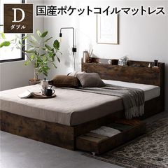 ベッド ダブル 2層ポケットコイルマットレス付き ヴィンテージブラウン 収納付き コンセント 【同梱不可】【代引不可】[▲][TP]