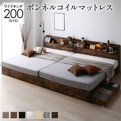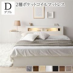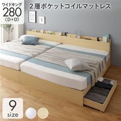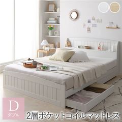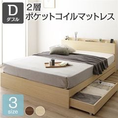 ベッド 収納付き 木製 コンセント付き ナチュラル ダブル 2層ポケットコイルマットレス付き 【同梱不可】【代引不可】[▲][TP]