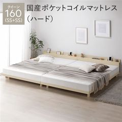 ベッド クイーン ベッドフレームのみ ブラウン 低床 照明 宮付 すのこ ローベッド 寝具 【同梱不可】【代引不可】[▲][TP]