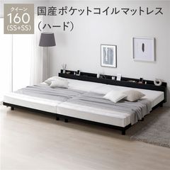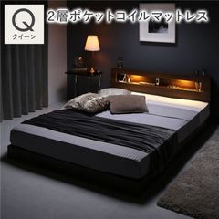 ベッド クイーン ベッドフレームのみ ブラック 低床 照明 宮付 すのこ ローベッド 寝具 【同梱不可】【代引不可】[▲][TP]