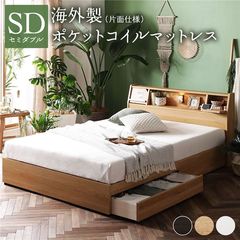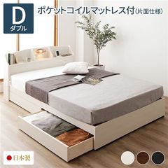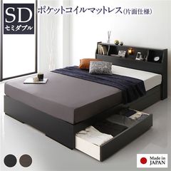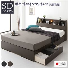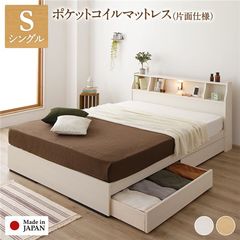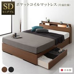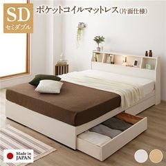 ベッド 日本製 収納・引出付き 木製 照明付 棚付セミダブル ベッドフレームのみ ホワイト 【同梱不可】【代引不可】[▲][TP]