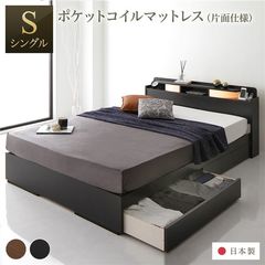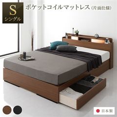 ベッド 日本製 収納・引出付き 木製 照明付 棚付シングル ベッドフレームのみ ナチュラル 【同梱不可】【代引不可】[▲][TP]