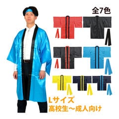 法被 子供 カラー 不織布 ロングハッピ [ハチマキ付] Mサイズ 中学生~高校生向け 中学生 高校生 祭り 運動会 体育祭 衣装