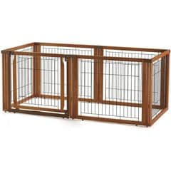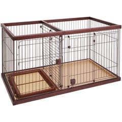 木製スライドペットサークル ワイド ダークブラウン(DB) アンダートレー付 お客様組立品 【同梱不可】【代引不可】[▲][TP]