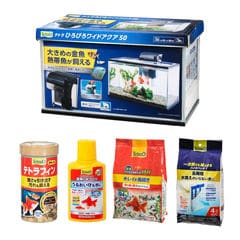 金魚飼育スタートセット テトラ ひろびろワイドアクア 50ver. 幅50×奥行き25×高さ30cm 飼育セット 水槽セット 関東当日便