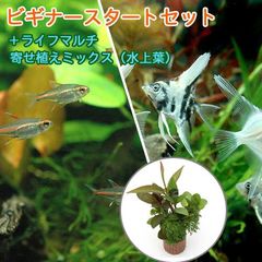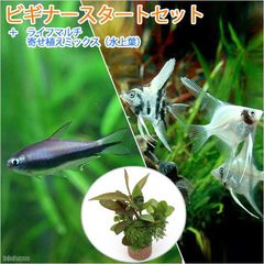 (熱帯魚)(水草)ビギナースタートセット グローライト・テトラ(10匹) +ミックス・エンゼル Sサイズ(2匹) 北海道・九州航空便要保温
