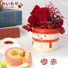 雪だるま プレゼント ギフト 花 プリザーブドフラワー【赤】 スイーツセット snowman ご指定OK