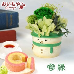 雪だるま プレゼント ギフト 花 プリザーブドフラワー【緑】 スイーツセット snowman ご指定OK