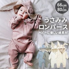 ベビー リブロンパース カバーオール 無地 yktkid5195【ピンク】【70cm】