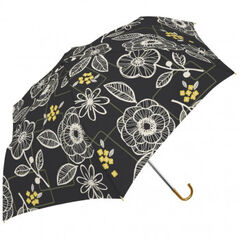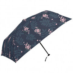 三国 グラスファイバー骨軽量耐風ミニ折りたたみ傘 リーフ&プティフルール ネイビー A2114204