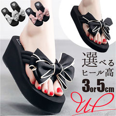 ビーチサンダル レディース 厚底 おしゃれ【ブラック×フラワー】【23cm】