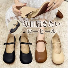 ベルトパンプス ローヒール 幅広め【ブラック】【38(23.5cm)】