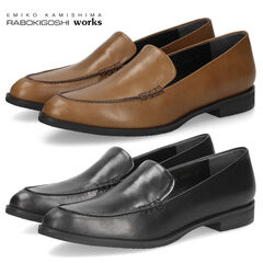 19ローファー レディース 本革 防水 パンプス ローヒール 晴雨兼用 日本製 ラボキゴシ ワークス RABOKIGOSHI works 12831 22.0cm ブラック