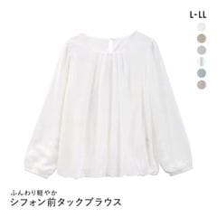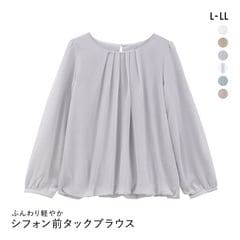 ニッセン シフォン前タック9分袖ブラウス カットソー裏地付 UVカット L LL NISSEN