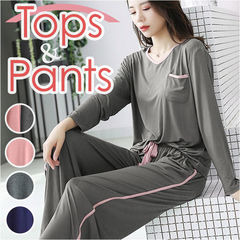 パジャマ ルームウェア 上下セット krwy2104【ピンク×グレー】【Mサイズ】