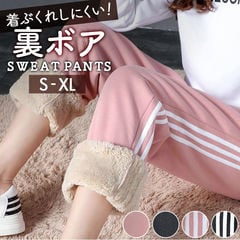 スウェットパンツ レディース 裏ボア 【ブラック×ライン】【XLサイズ】
