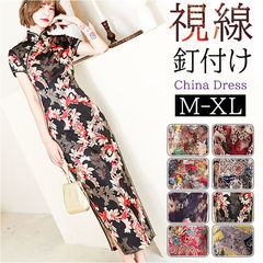 チャイナドレス 半袖 j3082cq1【CQ1-1ワイン】【XLサイズ】