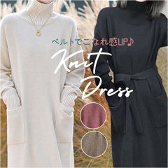 ロングワンピース ニット タートルネック mmop822c【アイボリー】【Sサイズ】