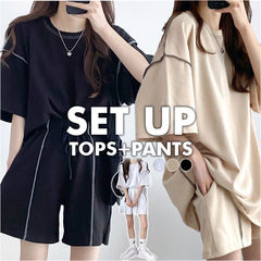 ハーフジップ ハーフパンツ セットアップ mmsetup14【ベージュ】【Mサイズ】