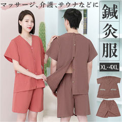 鍼灸服 サロン マッサージ服 サウナ 上下セット【メンズ×ブラウン】【3XL】