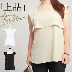 ジャカードニットベスト×とろみシャツアンサンブル【ピンクベージュ】【LLサイズ】