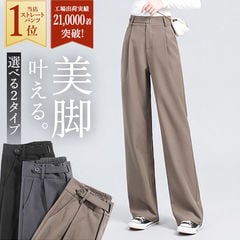 ハイウェスト ストレートパンツ kpants183【グレー×ロング】【Mサイズ】