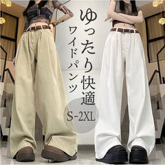 ハイウェスト ストレートパンツ kpants183【グレー×ロング】【Lサイズ】