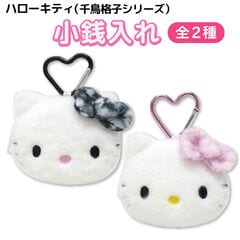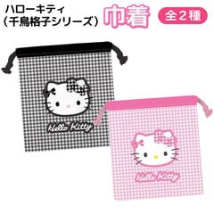 ハローキティ 千鳥格子 巾着袋 1個 デザイン入りの台紙付き ブラック ピンク リボン かわいい 巾着 小物入れ サンリオ キティ