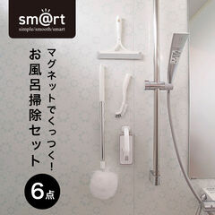 sm@rt お風呂掃除 浮かせて収納 浴室清掃 セット 6点セット(お風呂掃除 セット マグネット 風呂掃除 ブラシ)