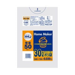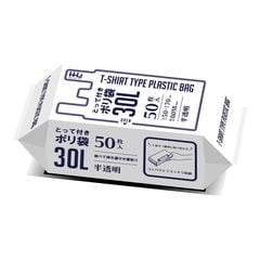 【送料込・まとめ買い×10個セット】ハウスホールドジャパン KJ33 とって付 ポリ袋 32折 半透明 30L 50枚入