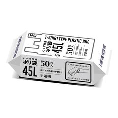 【送料込・まとめ買い×10個セット】ハウスホールドジャパン KJ43 とって付 ポリ袋 32折 半透明 45L 50枚入