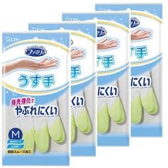 ファミリー 家庭用手袋 ビニール 手袋 うす手 指先強化 L グリーン 掃除 洗濯 用 (4双セット)
