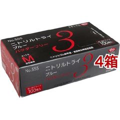 【訳あり】ニトリルトライ3 手袋 ブルー 粉無 Mサイズ No.555 (100枚入*4箱セット)