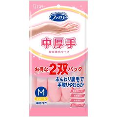 ファミリー ビニール 手袋 中厚手 指先強化 Mサイズ 2双パック 掃除 洗濯 食器洗い用 (1セット)