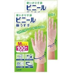 使いきり手袋 ビニール 極うす手 掃除 洗濯 食器洗い用 Mサイズ 半透明 (100枚入*2箱セット)