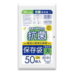 【送料込・まとめ買い×10個セット】ハウスホールドジャパン KE02 抗菌 食品用 保存袋 中 50枚 0.02 保存袋