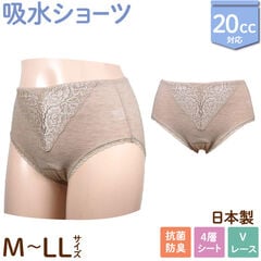 日本製 20cc 吸水ショーツ 綿混素材Vレース 婦人用 女性用 シニア 軽失禁 サニタリー 下着 LLサイズ