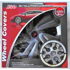 スタイリッシュに変身!カーボンタイプのホイールカバー 14インチ ブラック&シルバー 4枚セット 【同梱不可】【代引不可】[▲][TP]