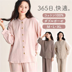 甚平風パジャマ ダブルガーゼ ルームウェア【ピンク×レディース】【Mサイズ】