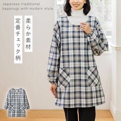 エプロン かっぽう着 レディース 大人 スモック 割烹着 チェック 長袖 お尻が隠れる 毎日の先染めかっぽうぎ