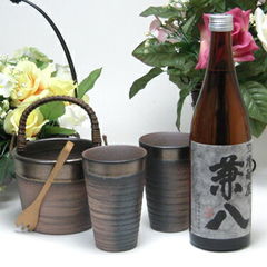 豪華酒器セット陶芸作家 安藤嘉規作(四ッ谷酒造 はだか麦を100%の麦焼酎 兼八 720ml(大分県))焼酎ギフト