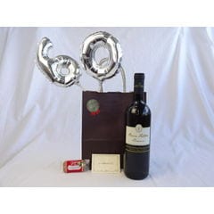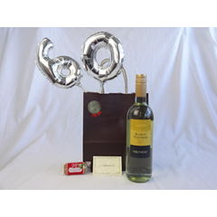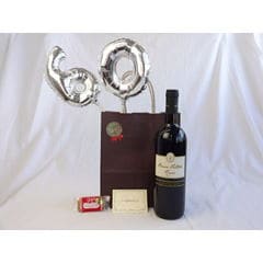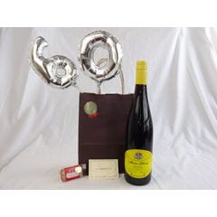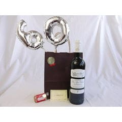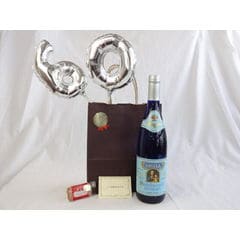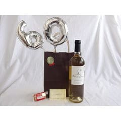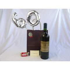 還暦シルバーバルーン60贈り物セット シャトー・レ・セット・シェーヌ白ワイン(フランス)750ml メッセージカード付