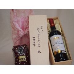 贈り物いつもありがとう木箱と珈琲豆セットオススメ珈琲豆(特注ブレンド200g)フランスボルドー金賞赤ワイン 750ml