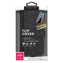 PGA iPhone 16 Pro(6.3インチ) フリップカバー Premium Style フェルト/ブラック PG-24BFP07BK