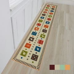 キッチンマット ロング 45cm×240cm ギャッベ調 動物イラスト 犬柄 猫柄 裏面滑りにくい加工