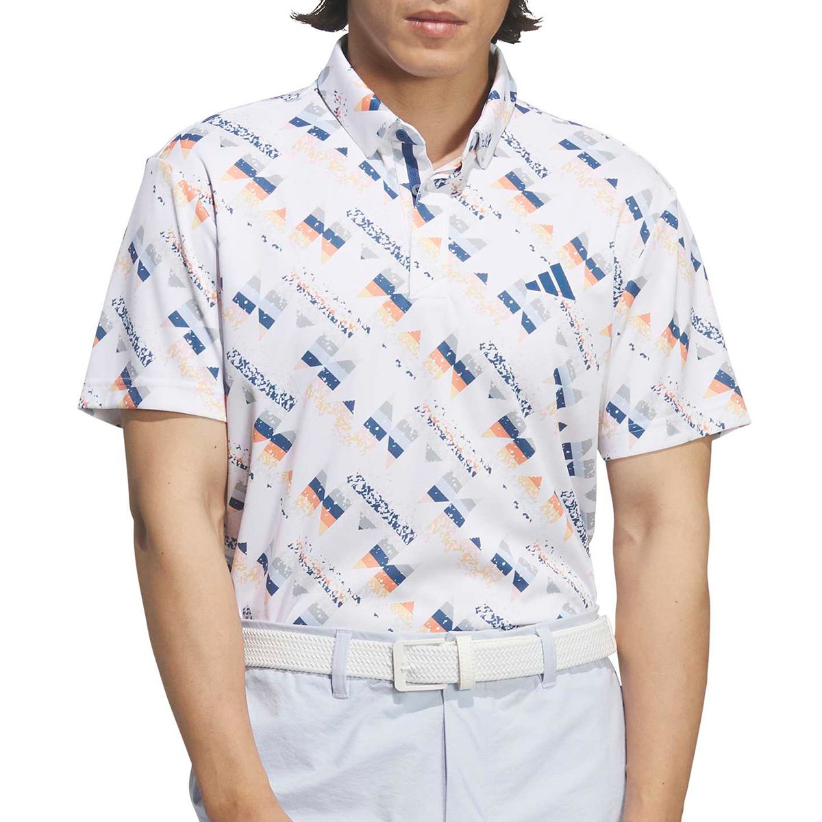 アディダス Adidas クライマクール シーズナルグラフィック ボタンダウン 半袖ポロシャツ J/M ホワイト/マルチカラー