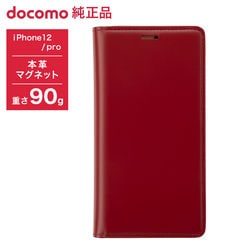 ドコモ純正 iPhone 12 12Pro本革フリップケース レッド スマホケース アメリカ産 収納 マグネット
