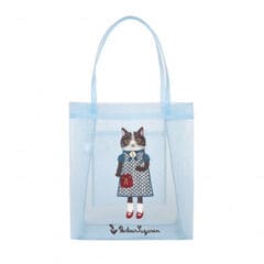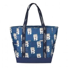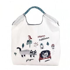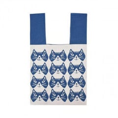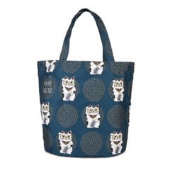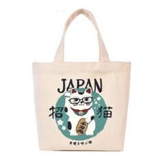 クスグルジャパン コブラン織りバッグ トートバッグ めがね猫招き柄 ブルーグリーン 25-8172