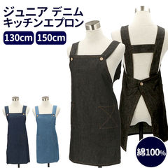ジュニア デニムキッチンエプロン 34556-65000【ネイビー】【150cm】